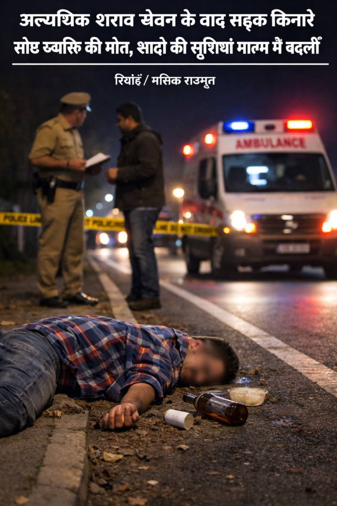 अत्यधिक शराब सेवन के बाद सड़क किनारे सोए व्यक्ति की मौत, शादी की खुशियां मातम में बदलीं