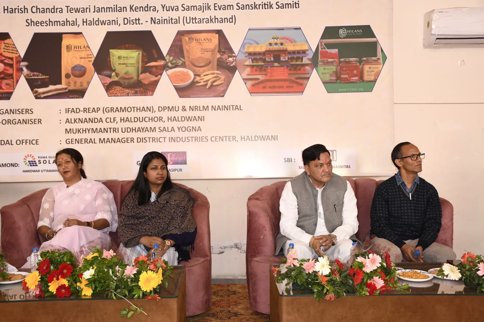 उत्तराखण्ड राज्य स्थापना दिवस ” रजत जयंती* के उपलक्ष्य में बुधवार को शीशमहल हल्द्वानी में जिला उद्योग केन्द्र, मुख्यमंत्री उद्यमशाला योजना (रीप) व एनआरएलएम के संयुक्त तत्वावधान में मल्टी स्टेक बायर सेलर मीट का आयोजन किया गया, जिसमें बतौर मुख्य अतिथि श्रीमती रेनू अधिकारी दर्जा राज्य मंत्री, विशिष्ट अतिथि मेयर नगर निगम हल्द्वानी गजराज विष्ट, मुख्य विकास अधिकारी अनामिका द्वारा कार्यक्रम का शुभारंभ किया गया।
