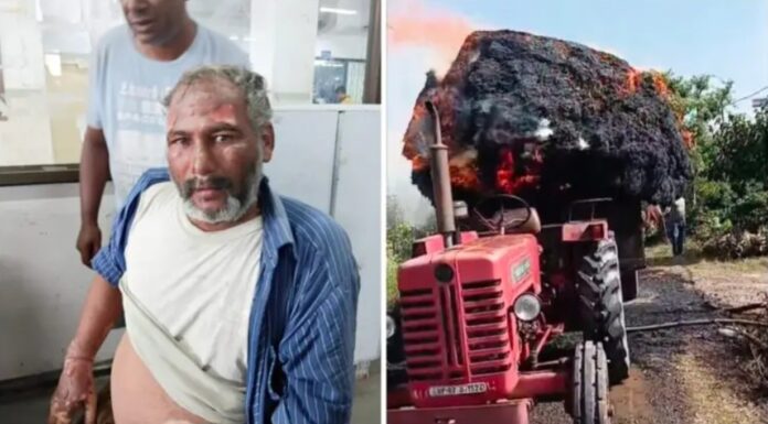 गौलापार मैं कटी हुई गेहूं की फसल ले जाते वक्त किसान के ट्रैक्टर ट्रॉली में आग लगने से फसल जलकर हुई राख            सह सम्पादक हरीश भाकुनी। हल्द्वानी के गौलापार में शॉर्ट सर्किट से खड़े गेहूं की फसल से लदी ट्रैक्टर ट्राली में आग लग गई। अचानक हुई घटना से हड़कंप मच गया। घटना में ट्रैक्टर चालक गंभीर रूप से झुलस गया। आनन फानन में ग्राम प्रधान नीरज रेक्वाल और अन्य ग्रामीण चालक को सुशीला तिवारी अस्पताल लेकर पहुंचे जहां उसका इलाज किया जा रहा है जानकारी के अनुसार रविवार को गौलापार के ग्राम सुंदरपुर रेक्वाल में भवान सिंह बिष्ट की गेहूं की फसल को उनके घर पर लेकर जा रही ट्रैक्टर ट्राली में ऊपर से गुजर रही विद्युत लाइन में हुए शॉर्ट सर्किट्स से गिरी चिंगारी के कारण आग लग गई। सुखी फसल होने के कारण चिंगारी ने तुरंत भयानक आग का रूप ले लिया। सब इतनी जल्दी हुआ कि ट्रैक्टर चालक रमेश चंद्र को बचने का मौका भी नहीं मिल सका। हादसे में रमेश बुरी तरहां झुलस गया। जिसे ग्रामीण तुरंत सुशीला तिवारी अस्पताल लेकर पहुंचे जहां उसका उपचार किया जा रहा है ग्राम प्रधान नीरज रैकवार ने प्रशासन से घायल और गेहूं स्वामी को मुआवजा दिए जाने की मांग की है।