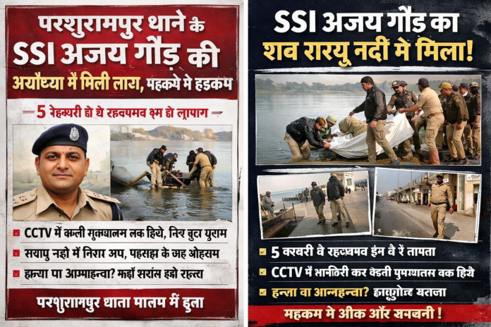 अयोध्या में सरयू नदी से एक अज्ञात शव बरामद होने की सूचना पर जब शिनाख्त की गई, तो वह परशुरामपुर थाने के कार्यवाहक थानाध्यक्ष SSI अजय गौड़ का निकला। शव मिलने की खबर से परिजनों में कोहराम मच गया, वहीं पुलिस महकमे में शोक की लहर दौड़ गई।