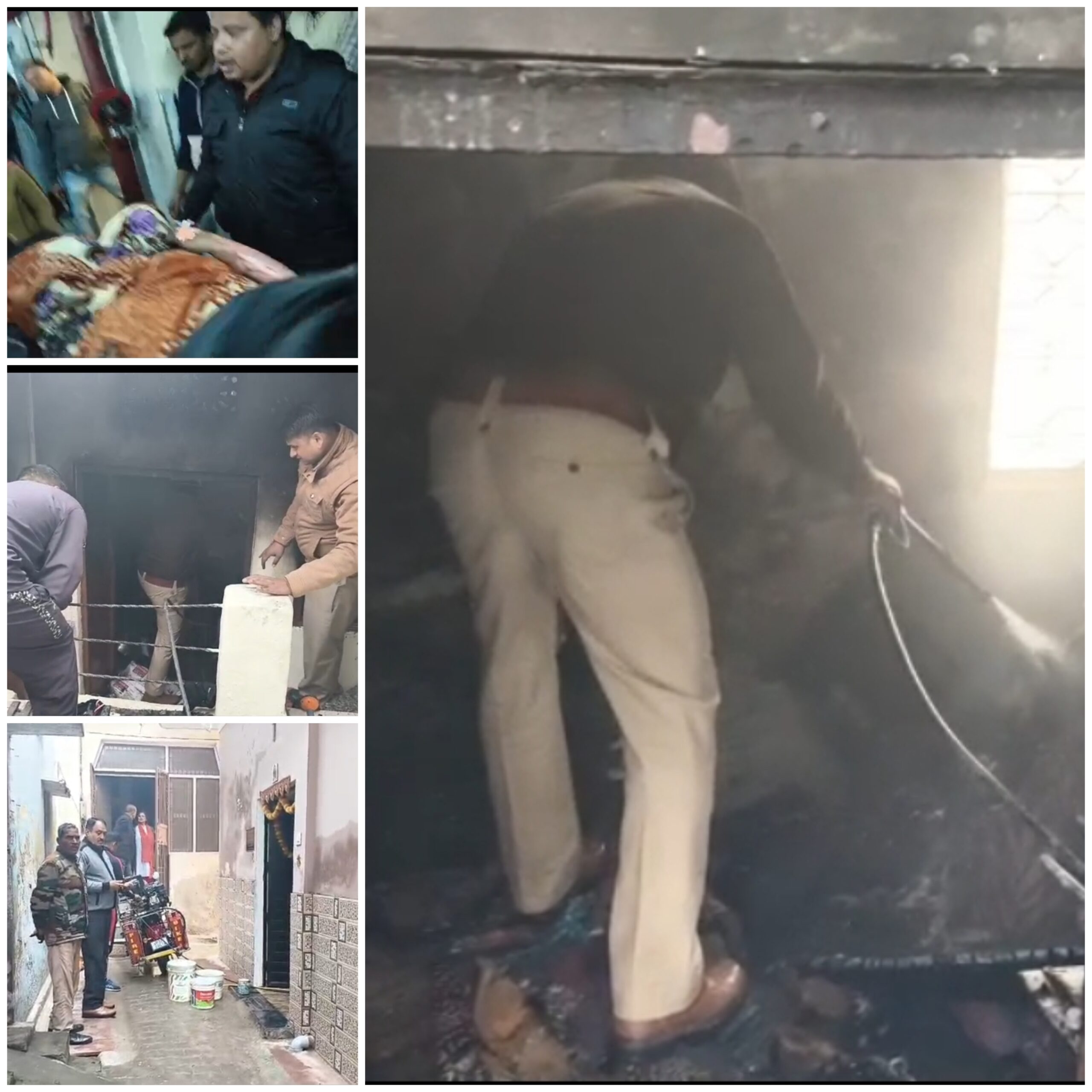 पानी गर्म करने वाली मशीन में शॉर्ट सर्किट से दो मंजिला घर में भीषण आग, महिला गंभीर रूप से झुलसी पूरा कमरा जलकर राख, बेड भी खाक