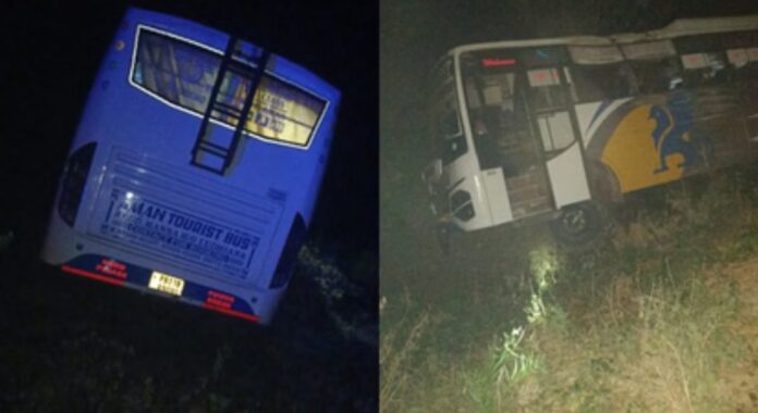शाहजहांपुर में 15 फीट खाई में उतरी टूरिस्ट बस; पांच यात्री घायल