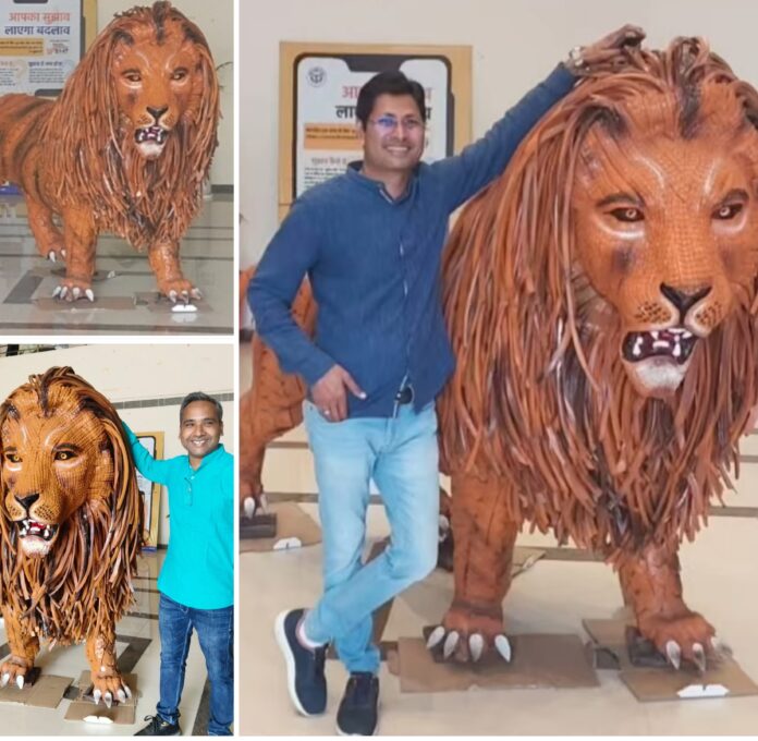 नगर आयुक्त संजय मौर्या के मुताबिक, स्मार्ट सिटी मिशन के तहत “बेस्ट आउट ऑफ वेस्ट” की थीम पर यह शेर तैयार किया गया है। इसे स्थानीय कलाकारों ने पुराने टायर, तारों और धातु के टुकड़ों से बड़ी मेहनत के साथ बनाया है। शेर की मूर्ति देखने में इतनी वास्तविक लगती है कि कई लोग पहली नजर में यह मान ही लेते हैं कि यह धातु से बनी है।