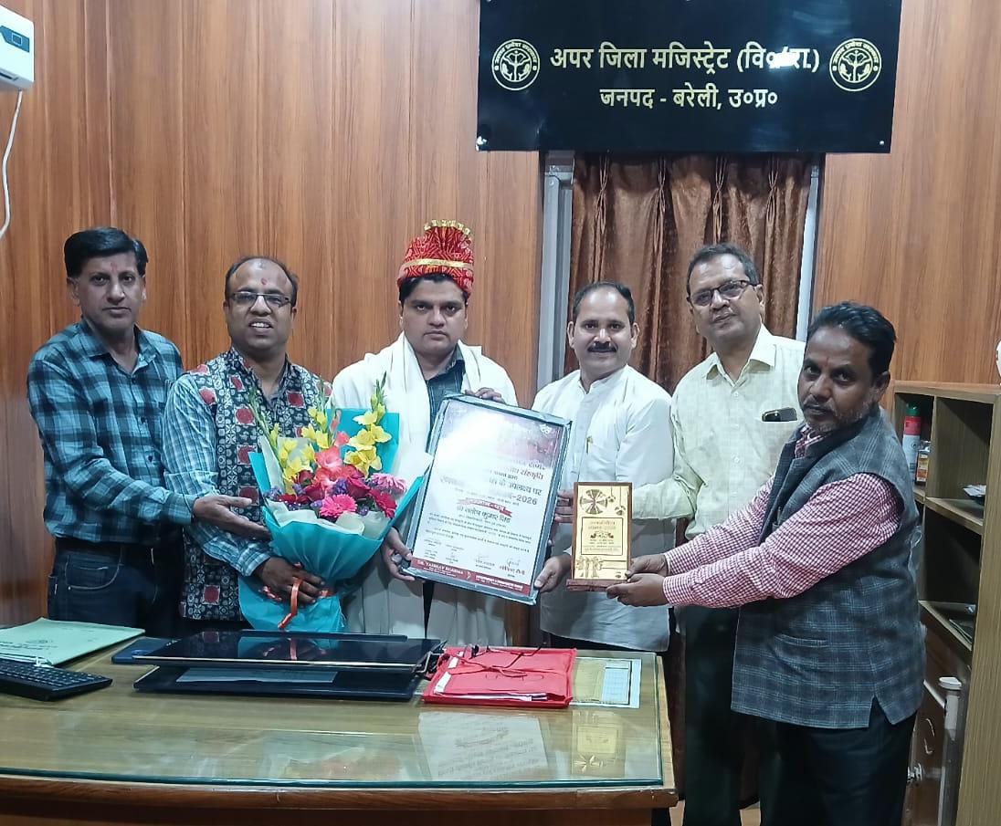 बरेली।यूथ वेलफेयर, कला साहित्य एवं भारतीय संस्कृति को समर्पित संस्था द्वारा आयोजित “रंगकर्म गौरव सम्मान 2026” कार्यक्रम के सफल आयोजन पर एडीएम एफआर संतोष कुमार सिंह और वरिष्ठ रंगकर्मी सैयद सिराज अली ने आयोजकों को बधाई दी। यह कार्यक्रम 5 अप्रैल 2026 को रोटरी भवन में आयोजित किया गया था, जिसमें शहर के साहित्यकारों, कलाकारों और रंगकर्मियों की उल्लेखनीय भागीदारी रही।