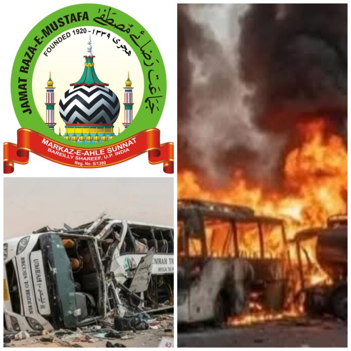 Bareilly, Uttar Pradesh Jamat Raza-e-Mustafa, the 108-year-old socio-religious organization operating under the holy guidance of Shahzada-e-Huzur Tajush Shariah, renowned Islamic scholar Muhammad Asjad Raza Khan Qadri, has written an appeal to the Ministry of External Affairs (MEA), Government of India, seeking urgent assistance for the families of Indian pilgrims who tragically passed away in Madinah al-Munawwarah.