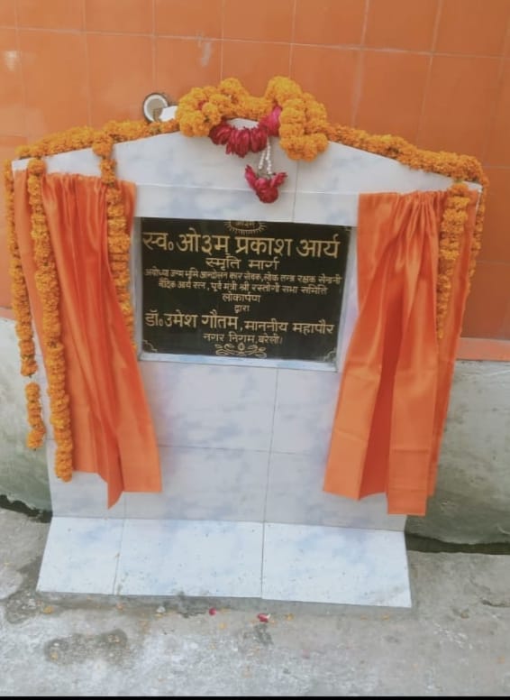 हिंदू हृदय सम्राट, लोकतंत्र सेनानी, पूर्व प्रदेश उप प्रमुख शिव सेना स्व ओम प्रकाश आर्य जी के नाम की सड़क का लोकार्पण आज बरेली के महापौर डॉ उमेश गौतम ने किया । इस अवसर पर महापौर ने स्व ओम प्रकाश आर्य जी के संस्मरण लोगों को बताए और उनके मार्ग पर चलने की अपील की ।