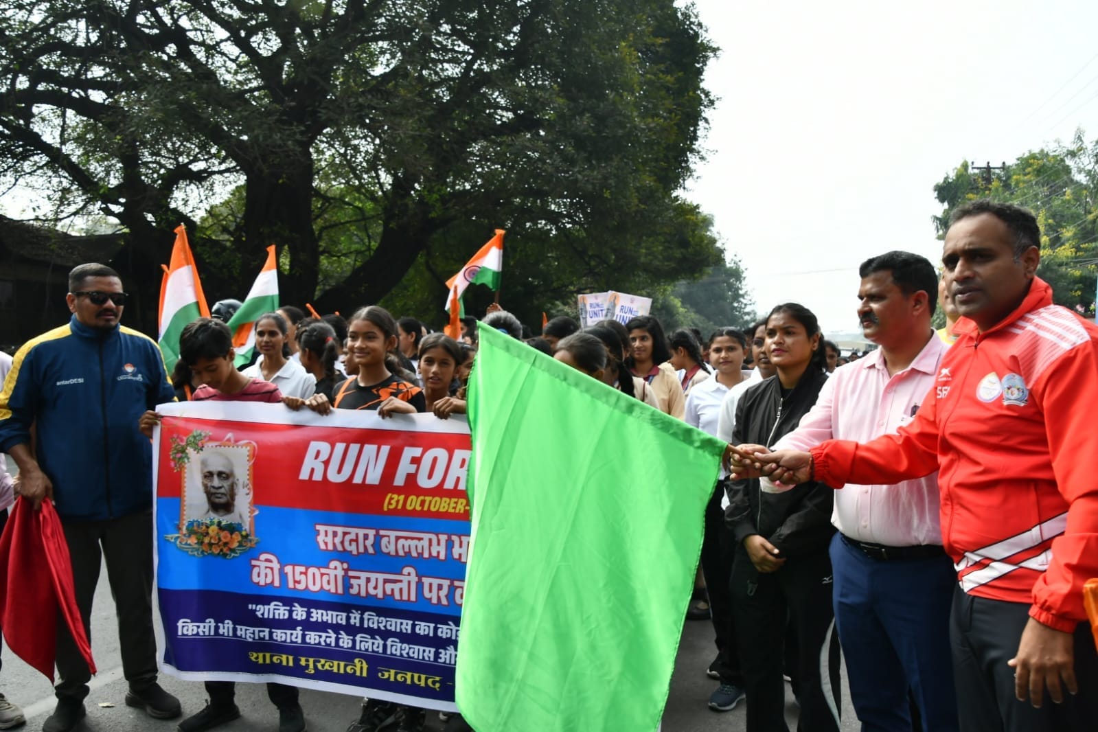 🏃 हल्द्वानी में आयोजित कार्यक्रम में हल्द्वानी कोतवाली से एम0बी0पी0जी0 कॉलेज हल्द्वानी तक RUN FOR UNITY दौड़ का आयोजन किया गया, जिसमें एसएसपी नैनीताल द्वारा हरी झंडी दिखाकर दौड़ का प्रारंभ किया गया।